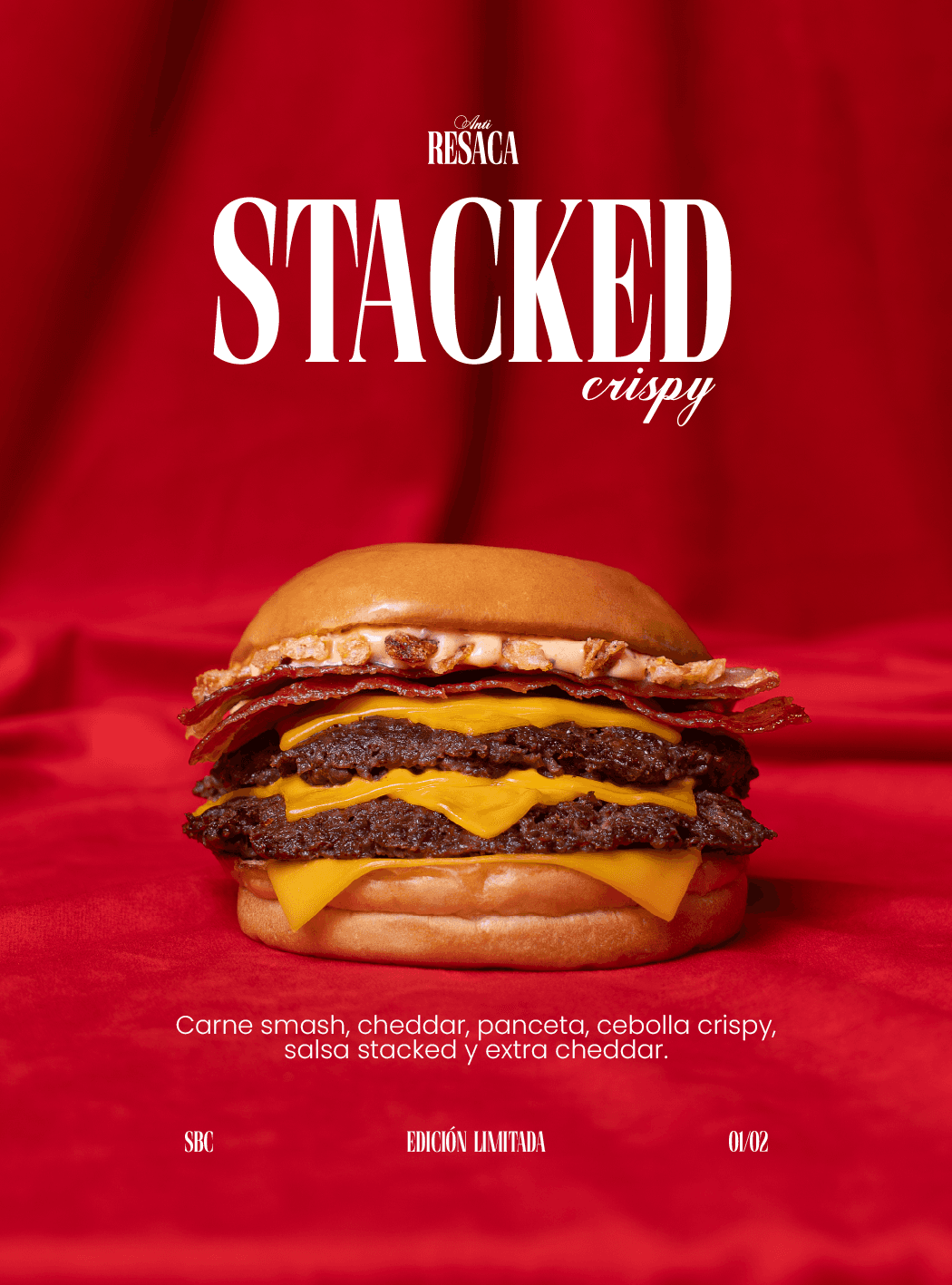 Carne smash, cheddar, panceta, lechuga, tomate y mayonesa.
