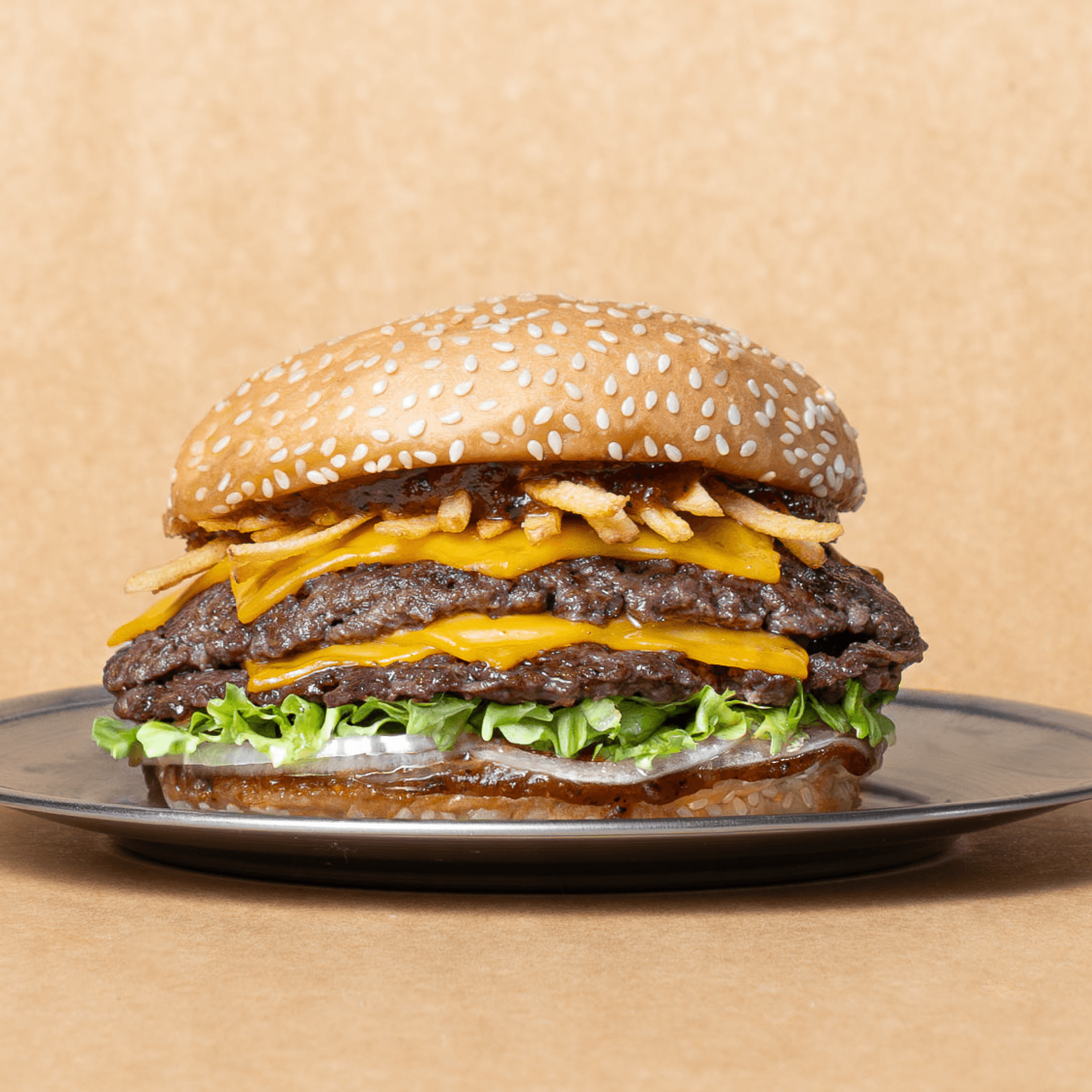 Carne smash, cheddar, panceta y salsa Stacked.