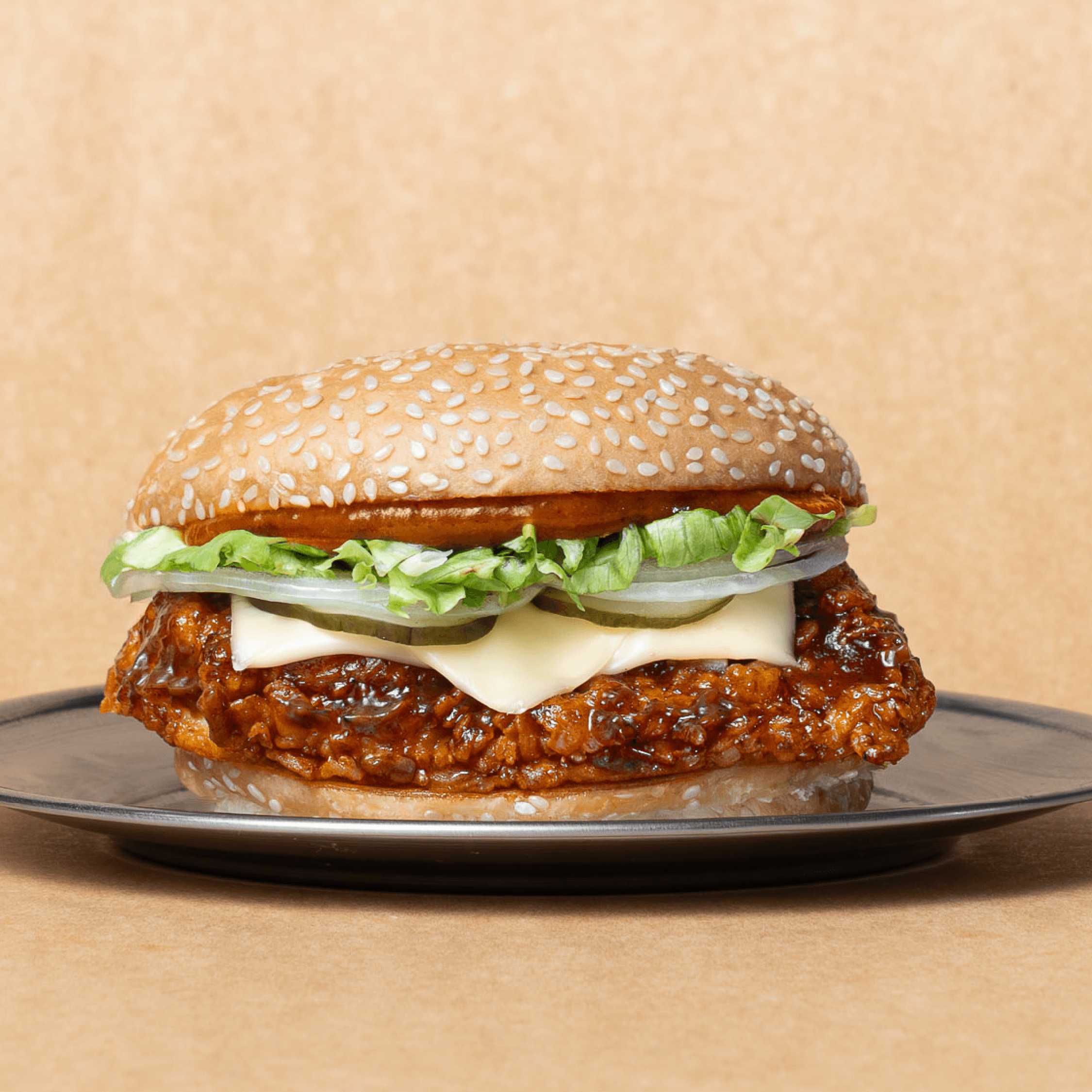 Pollo crispy, cheddar, lechuga, pepinos y mayonesa especiada.